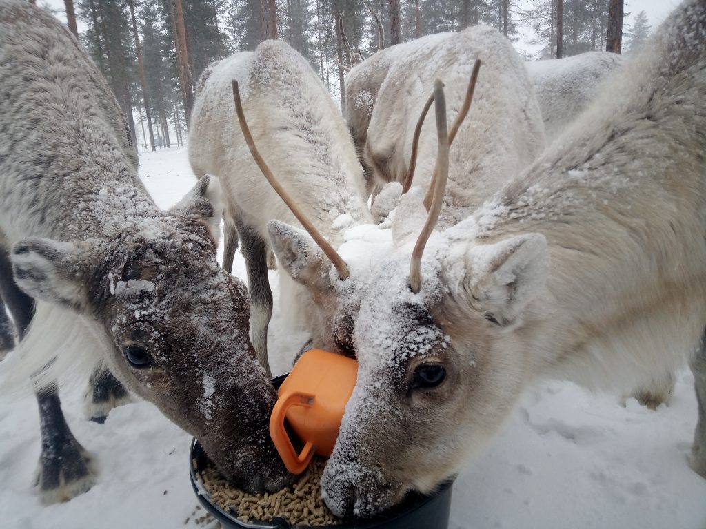 When we are back at our place we can feed rest of the reindeer with snowmobile and after that