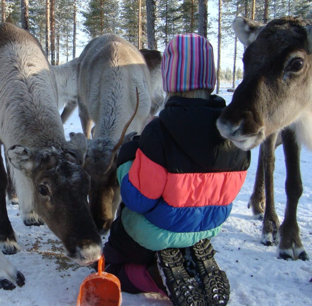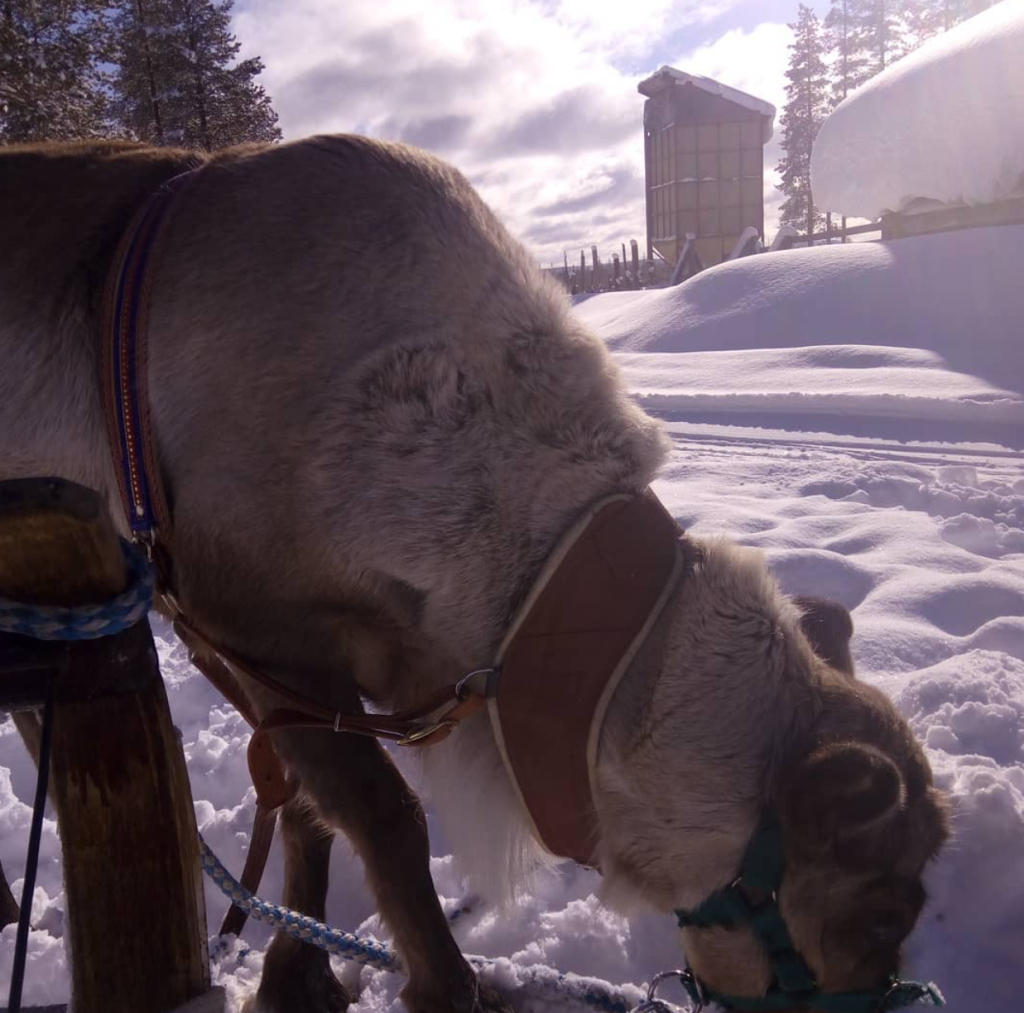 At our place we start the day with reindeer sleigh ride (about 1km).